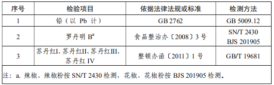 辣椒、花椒、辣椒粉、花椒粉检验项目