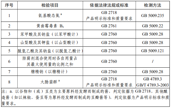 酱类抽检检验项目: