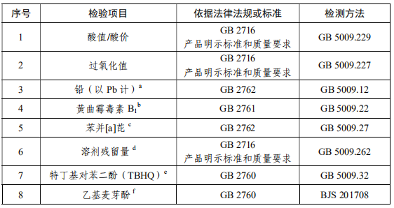 食用植物油检测范围: